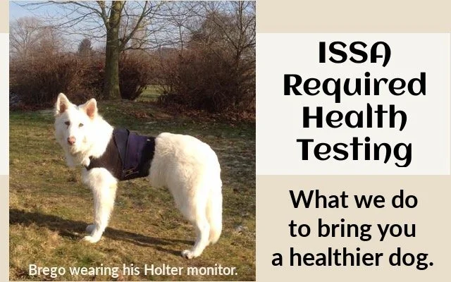 All ISSA breeding dogs must pass an auscultation test, signed off on by their veterinarian. If the auscultation detects any murmur or possible anomaly, the dog must then undergo an echocardiogram to make sure that their heart structure is normal before being approved to breed. ISSA breeders who wish to do the echo instead of the auscultation are encouraged to do so if they wish, but are suggested to be done after the age of 12 months.